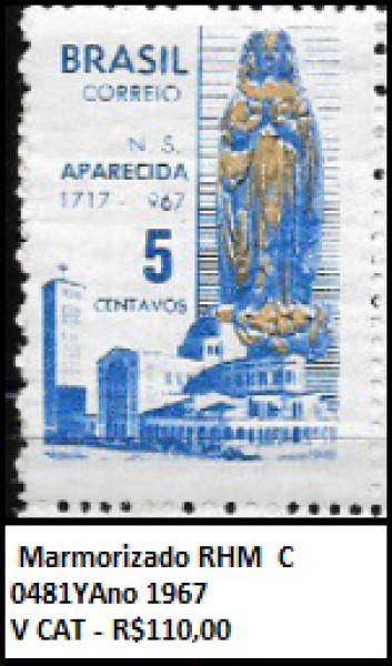 • MARMORIZADO ESCASSO RHM C 0481Y Ano 1967  V CAT R$ 110 REAIS - SELO EM ESTADO MINT DE CONSERVAÇÃO