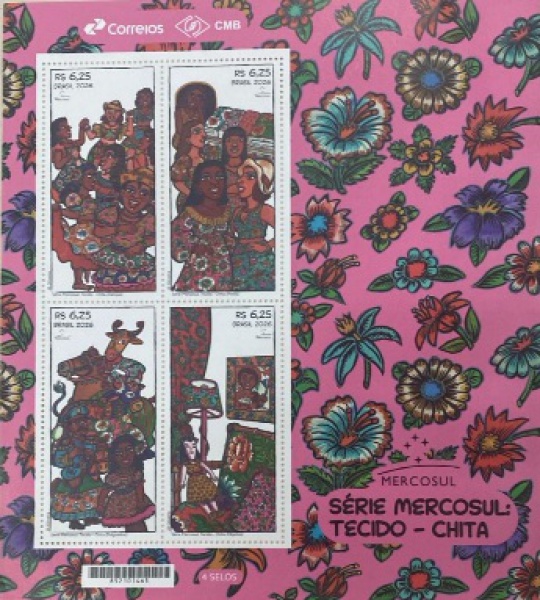 • BRASIL BLOCO COM HOMENAGEM AO MERCOSUR TECIDO CHITA ANO 2026 LANÇAMENTO MINT