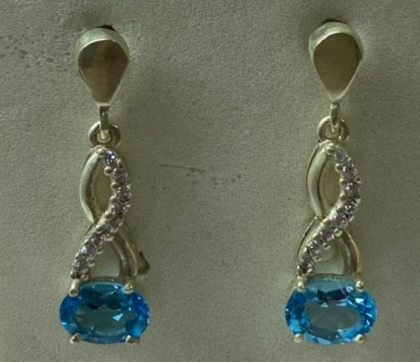 • BRINCOS PAR EM PRATA TODA TRABALHADA COM TOPAZIO SKY BLUE   EM LAPIDAÇÃO OVAL  MULTIFACETADOS -LAPIDAÇÃO E COR INCRIVEL
