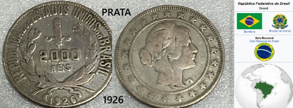 • BRASIL MOEDA DE PRATA DO ANO 1926 DE 2000 RÉIS COM 8 GRS DE PRATA TIRAGEM BAIXA ESTADO DE CONSERVAÇÃO CONFORME A FOTO EXIBIDA !!