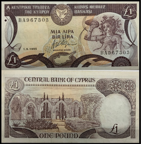 • CIPRUS - CHIPRE  - CEDULA EM ESTADO FLOR DE ESTAMPA DE CONSERVAÇÃO DE ONE POUND  DO ANO 1995