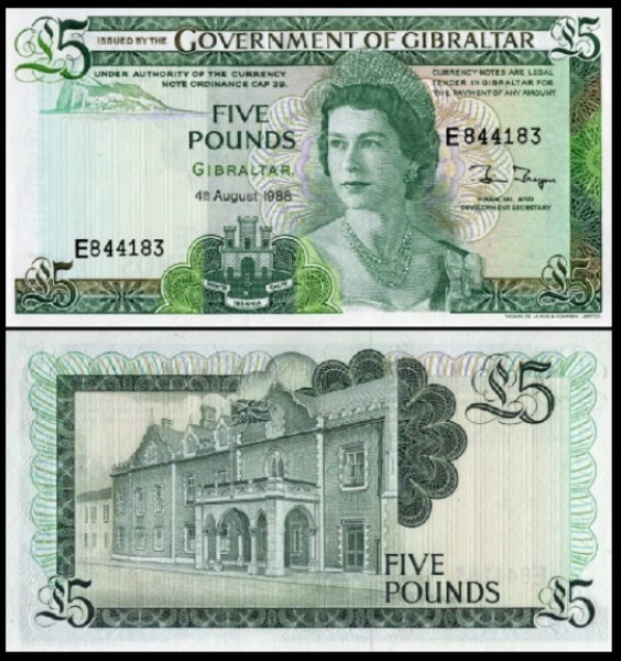 • GIBRALTAR CEDULA DE  5 Pounds 1988 SERIE RAINHAS - EM ESTADO FLOR DE ESTAMPA DE CONSERVAÇÃO