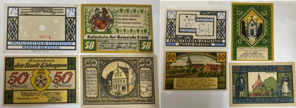 • ALEMANHA - LOTE COM 4 NOTGELDS ESCASSAS EM ESTADO FLOR DE ESTAMPA DE CONSERVAÇÃO