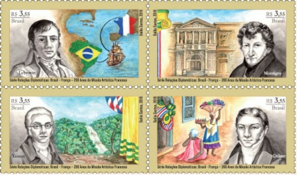• BRASIL - QUADRA DE SELOS  EM ESTADO MINT DE CONSERVAÇÃO COM  HOMENAGEM AOS 200 ANOS DA MISSÃO ARTISTICA FRANCESA