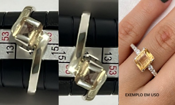 • ANEL BÉLISSIMO EM PRATA 950 COM TOPÁZIO IMPERIAL    EM LAPIDAÇÃO QUADRADA   INCRÍVEL E  MARAVILHOSO !!