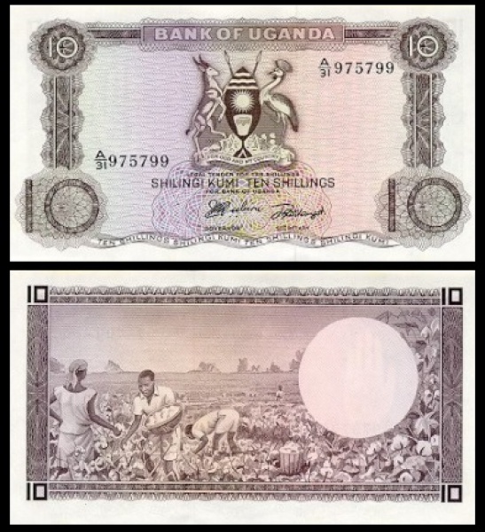 • UGANDA - CEDULA DE  10  Shillings DO ANO 1966 - EM ESTADO FLOR DE ESTAMPA DE CONSERVAÇÃO