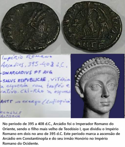 • IMPÉRIO ROMANO - MOEDA DO PERIODO DE 395 A 408  dC IMPERADOR ARCADIUS   - MUITO ESCASSA ESTADO DE CONSERVAÇÃO CONFORME A FOTO EXIBIDA