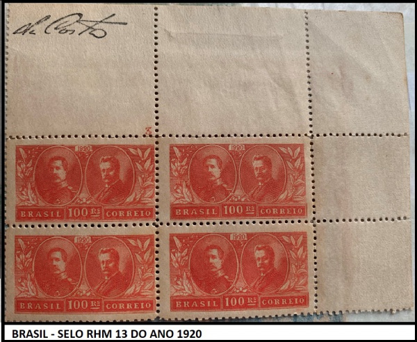 • BRASIL - QUADRA DO SELO RHM 13 DO ANO 1920- QUADRA EM BÉLISSIMO ESTADO  DE CONSERVAÇÃO !