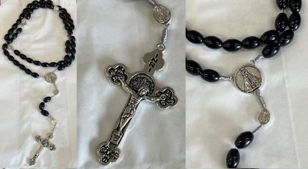 • ROSARIO QUE SIGNIFICA GRINALDA DE ROSAS COM 50 CONTAS DE AVE MARIAS COM CRUCIFIXO E A NOSSA SENHORA