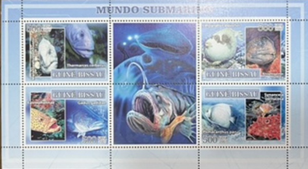 • GUINEE BISSAU BLOCO GRANDE  COM O TEMA FAUNA MARINHA DE AGUAS PROFUNDAS PEIXES   EM ESTADO MINT DE CONSERVAÇÃO