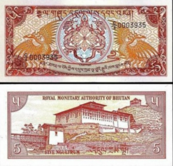 • Bhutan Butão CEDULA DE  5 Ngultrum EM ESTADO FLOR DE ESTAMPA DA CONSERVAÇÃO DO ANO 1985
