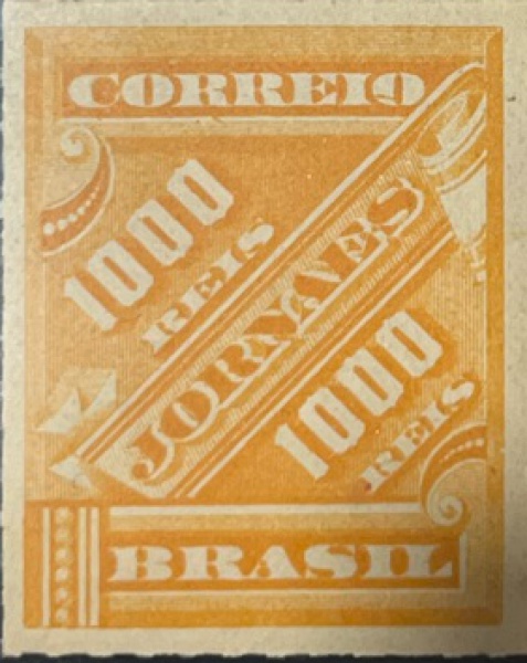 • BRASIL SELO JORNAL DE 1000 RÉIS RHM J - 9 DO ANO 1889 VALOR CAT- 20 UFS OU R$ 100 REAIS  EM ESTADO MINT DE CONSERVAÇÃO
