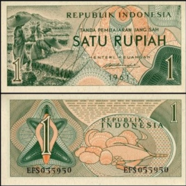 • INDONÉSIA  CEDULA  DE  1  RUPHIAH   DO ANO 1961  EM ESTADO FLOR DE ESTAMPA  DE CONSERVAÇÃO