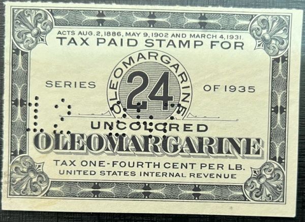 • TAXA OLEO MARGARINE DO ANO 1935 COM PERFIN EM ESTADO FLOR DE ESTAMPA DE CONSERVAÇÃO