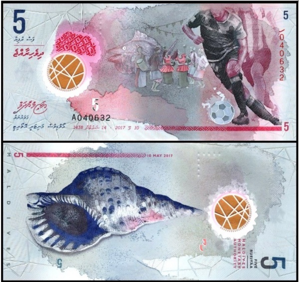 • MALDIVES - CEDULA EM POLIMERO DE 5 RUFIYAA DO ANO 2017  -  EM ESTADO FLOR DE ESTAMPA DE CONSERVAÇÃO