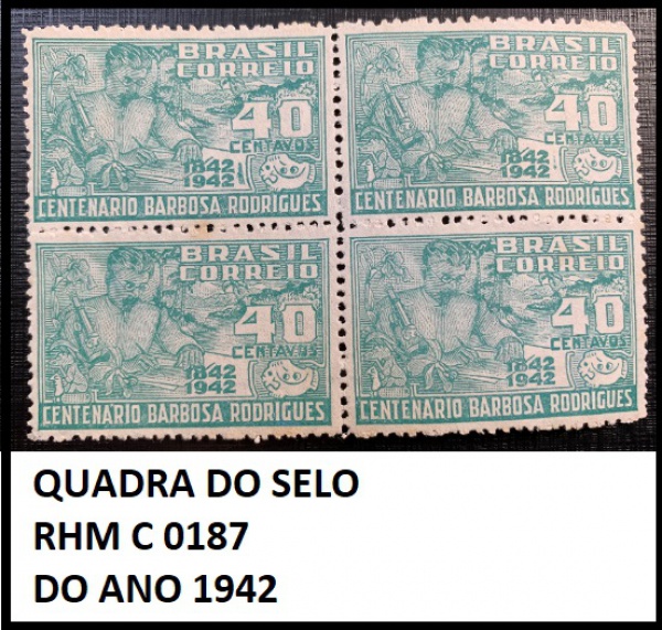 • QUADRA DO SELO COMEMORATIVO RHM C 0 187 DO ANO 1942    EM ESTADO MINT DE CONSERVAÇÃO