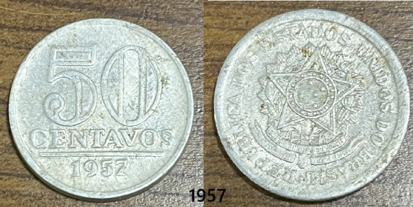 • BRASIL MOEDA DO ANO 1959  DE 50 CENTAVOS DO ANO 1957 - ESTADO DE CONSERVAÇÃO CONFORME A FOTO EXIBIDA