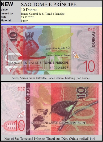 • SÃO TOMÉ E PRINCIPE -CEDULA DE 10 DOBRAS DO ANO 2020 EM ESTADO FLOR DE ESTAMPA DE CONSERVAÇÃO