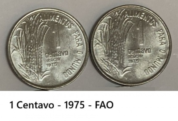 • BRASIL PAR DE MOEDAS FAO DO ANO 1975 CANA DE AÇUCAR EM ESTADO FLOR DE CUNHO DE CONSERVAÇÃO