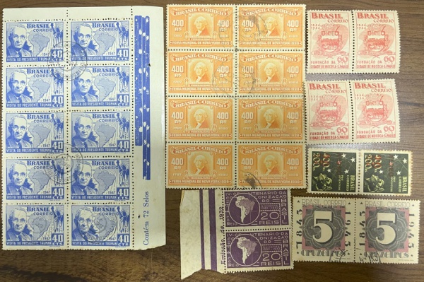 • BRASIL - QUADRA E SELO DO ANO 1955 EM ESTADO MINT DE CONSERVAÇÃO COM PONTOS DE FERRUGEM!
