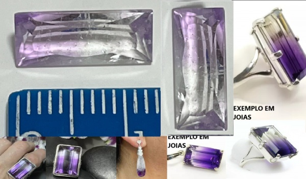 • AMETISTA BICOLOR - LAPIDAÇÃO RETANGULAR COR AMETISTA PURPURA COM CRISTAL  UM SHOW E MUITO ESCASSA!!!!!!!!!!!!!