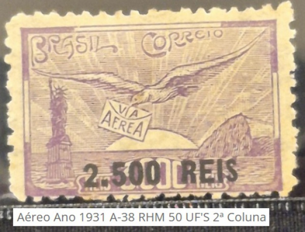 • BRASIL SELO AÉREO DO ANO 1931 RHM A-38 RHM 50 UF S OU R$ 300 REAIS - EM ESTADO MINT DE CONSERVAÇÃO