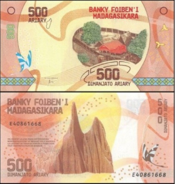 • MADAGASCAR - CEDULA DE 500 Ariary DO ANO 2017 - EM ESTADO FLOR DE ESTAMPA DE CONSERVAÇÃO